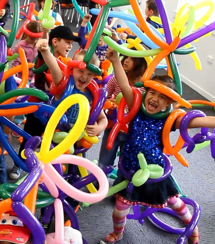 ¡Globos, giros y mucha diversión! Los niños dan forma a sus propias creaciones con imaginación y destreza.
